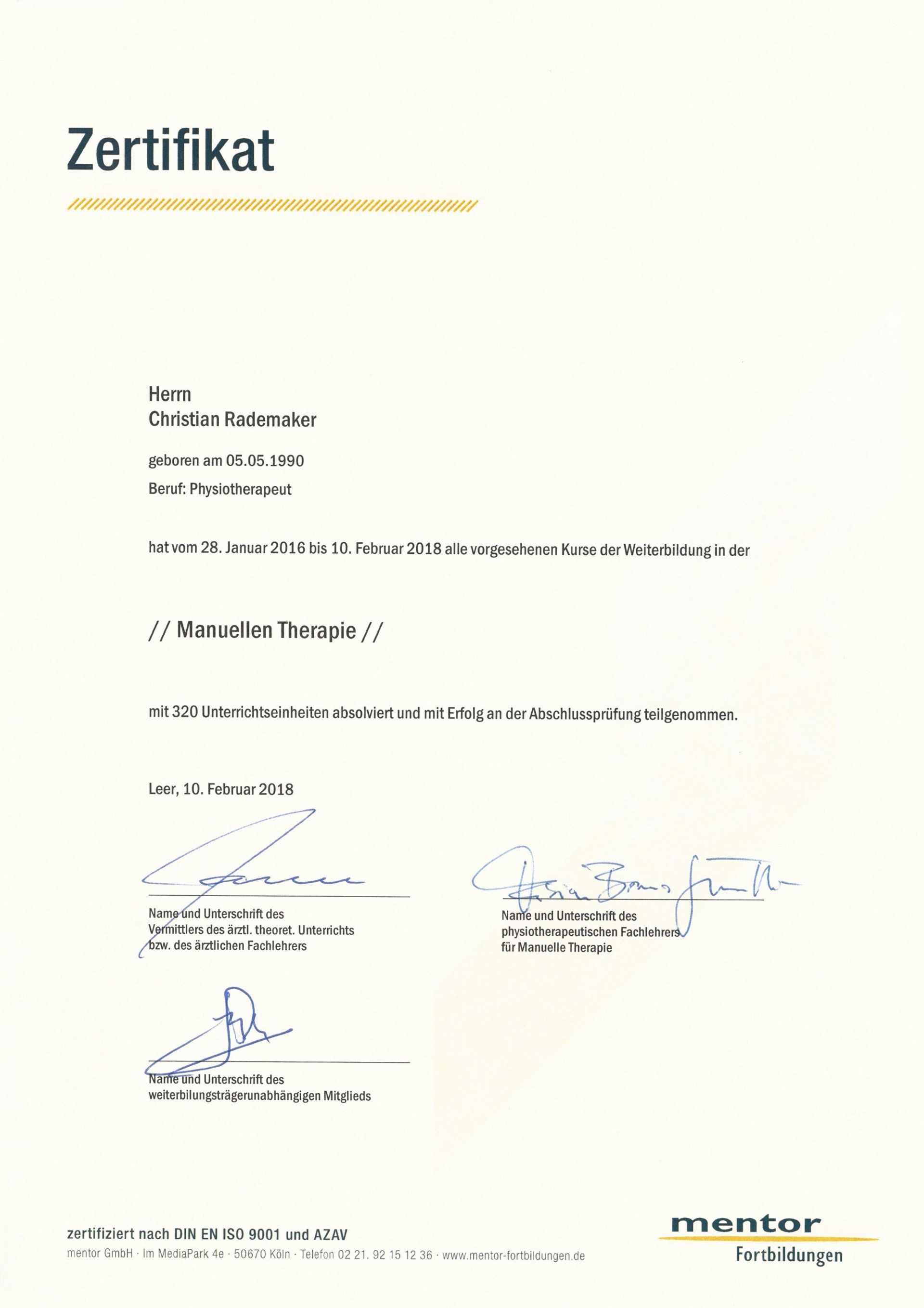 Bei meinen therapeutischen Tätigkeiten geht es mir vor allem um Ihre Gesundheit. Daher nehme ich mir viel Zeit für Ihre persönlichen Probleme, um mit Kompetenz und großer Sorgfalt individuelle Lösungen für Ihre Gesundheit und Ihr Wohlbefinden zu entwickeln und zu therapieren.